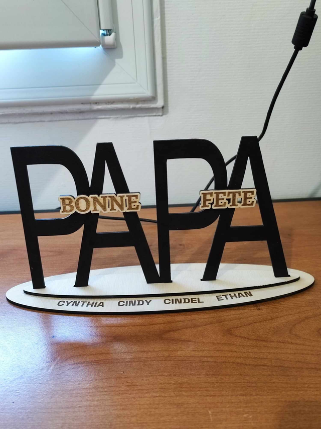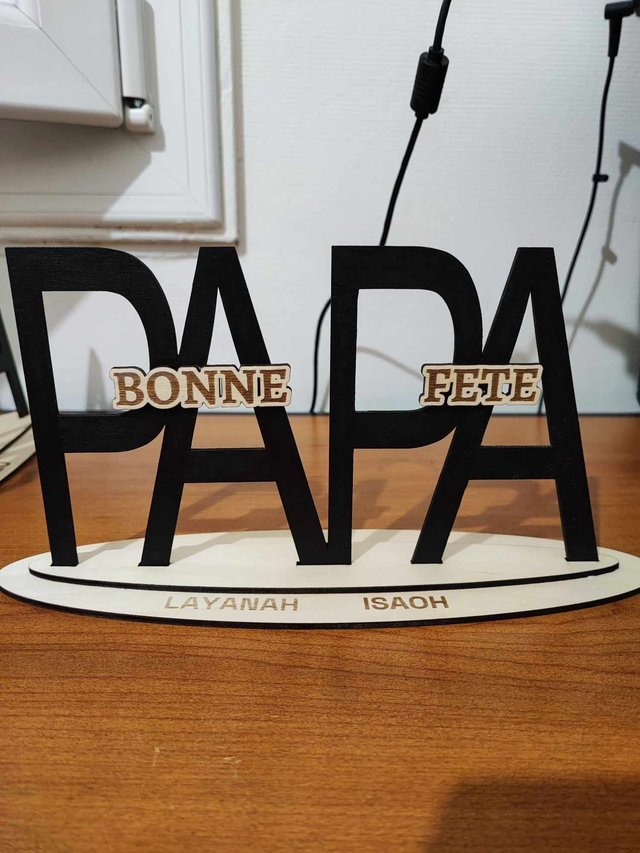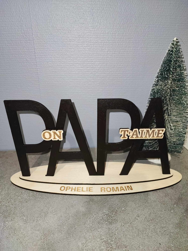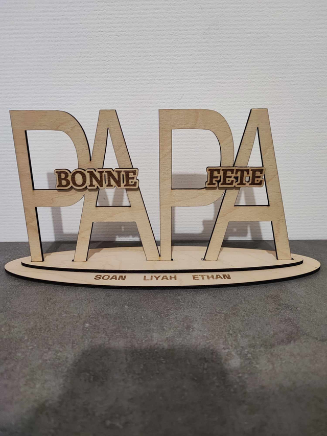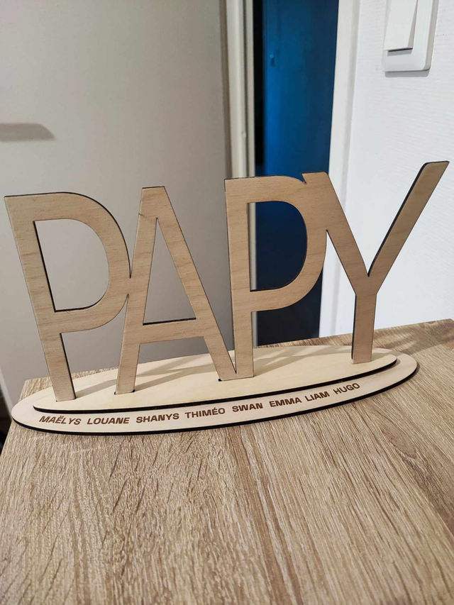 Idée cadeau pour Fête des pères /Fête des grand-pèrePapa ou Papi/Papy sur support avec inscription de prénom (9max)PAPA = Mesure sans pied inclus Largeur 24.8cm / hauteur 13.7cmPAPYI/PAPY = Mesure sans pied inclus Largeur 26.3cm / hauteur 14cmAu moment de vouloir valider votre panier il est écrit "Message à l'attention du commerçant"Merci de m'indiquer dans le cadre à droite les informations suivantes : les prénoms pour le pied (si besoin) et si vous souhaitez mettre un message Autre...( possible de me joindre également au 0664219396)